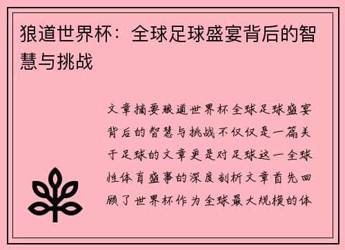 文章摘要的内容:本文探讨超级杯与世界杯如何在全球足球舞台上联动,深入分析其历史发展及未来趋势。通过对比两大赛事的背景、影响力和赛事组织等方面,揭示它们在全球足球文化和商业发展中的角色与影响。1、历史发展与影响超级杯和世界杯作为全球最重要的足球赛事,其历史发展深深影响了现代足球的演变。从它们的创立初衷、赛事组织到国际足联对其政策的影响,探讨超级杯和世界杯如何在历史上相互影响并推动全球足球的普及和竞技...